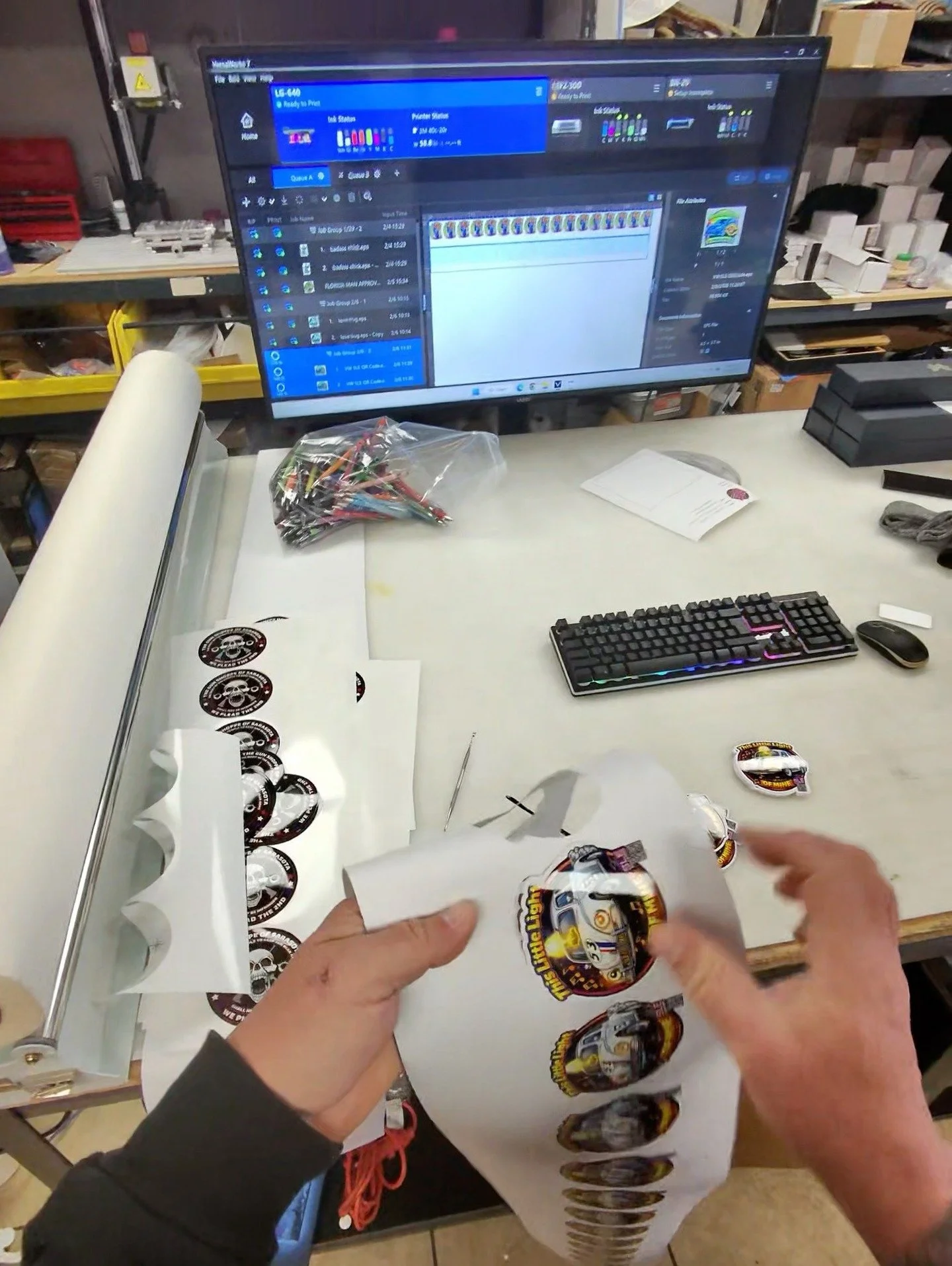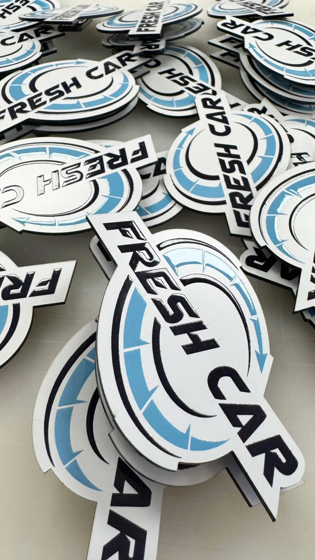 Custom stickers using superior UV printing technology, showcased on 3M vinyl material.