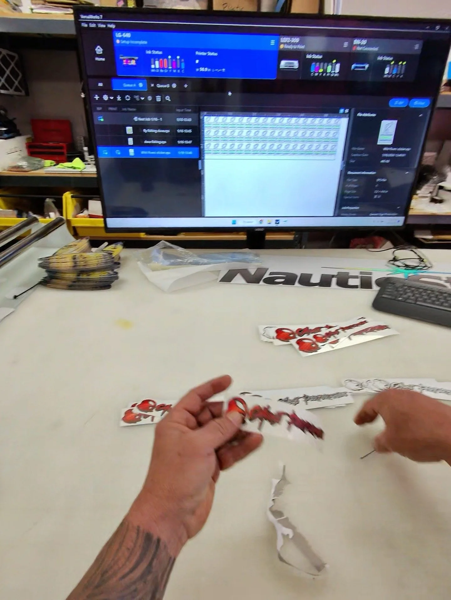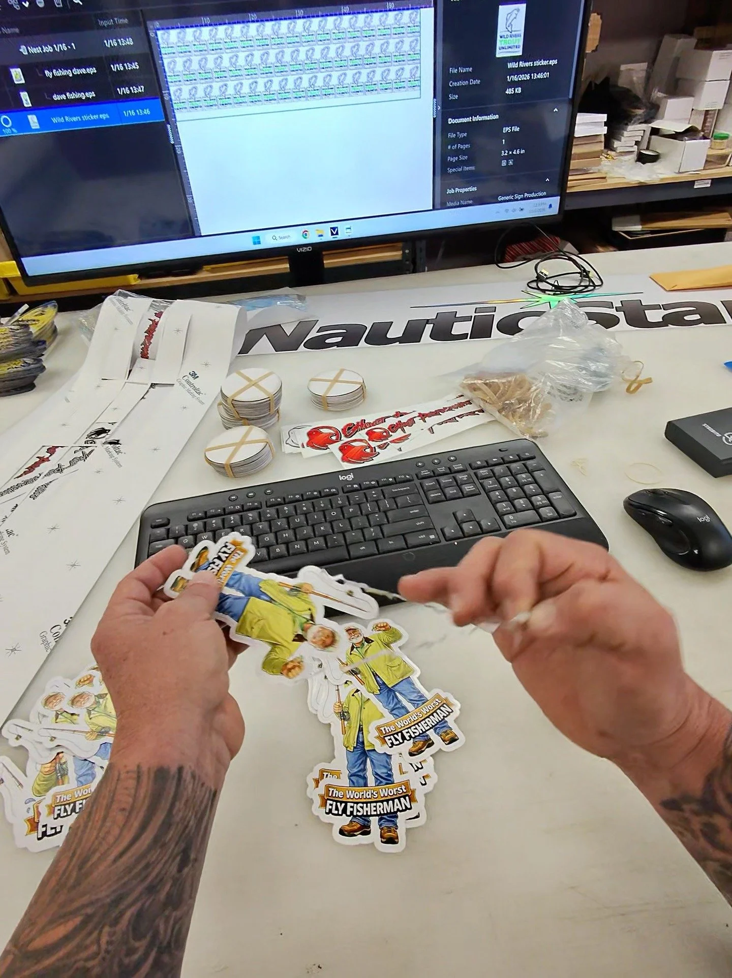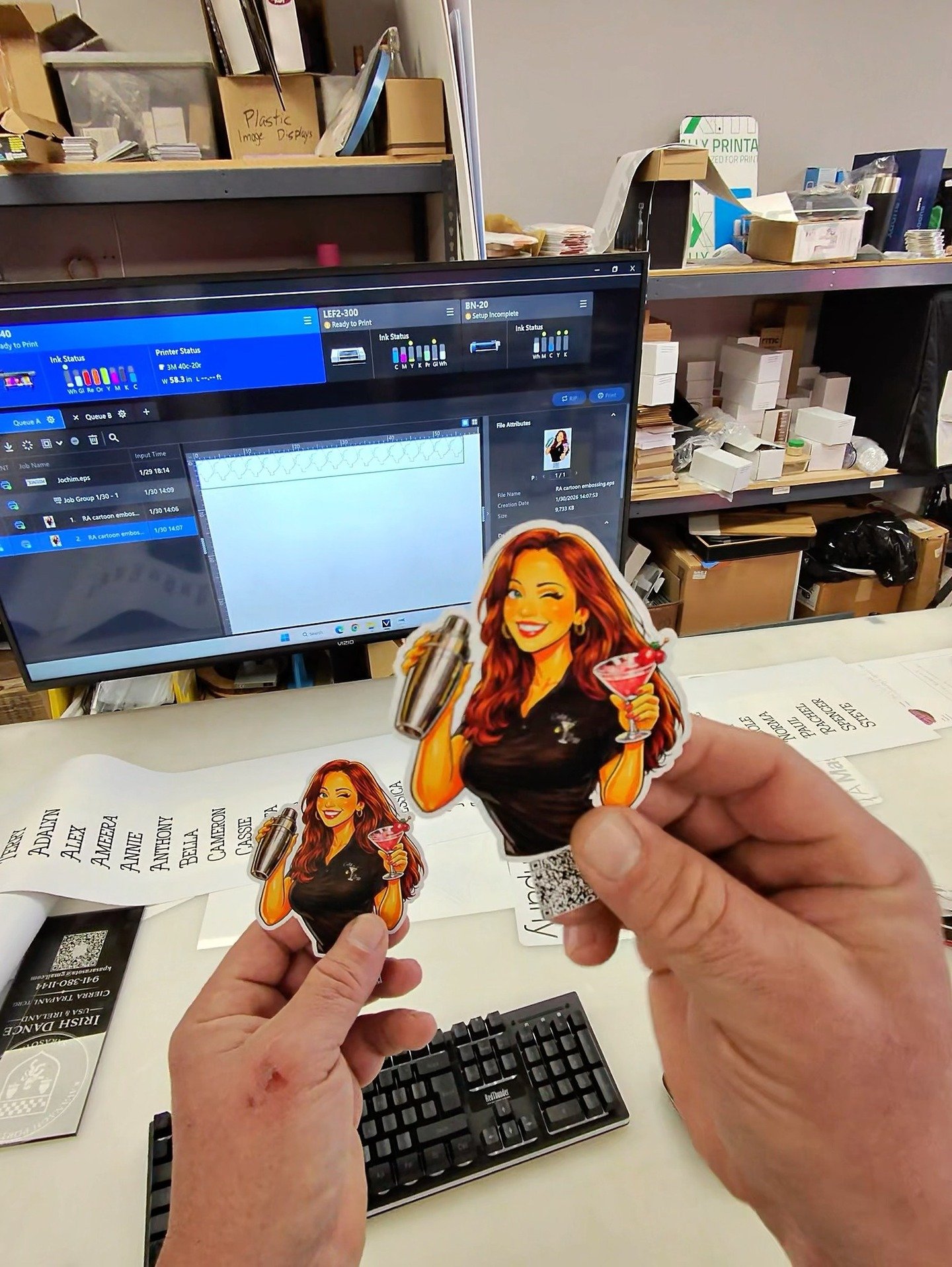 Custom stickers using superior UV printing technology, showcased on 3M vinyl material.